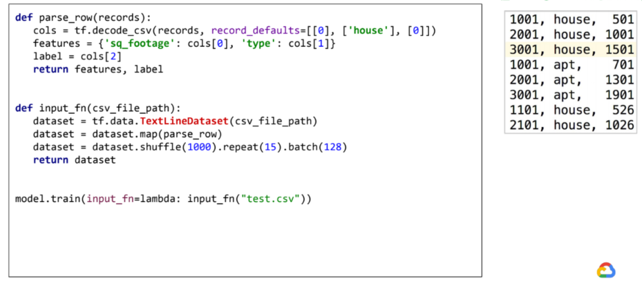 - csv 파일을 가져와 tensorflow estimator에 맞게 dataset을 구성해야함