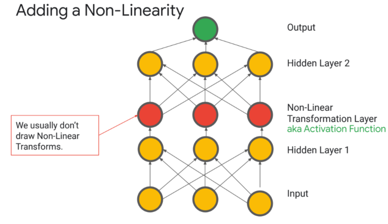 - 좀 더 복잡한(?) 모델이 되기 위해 중간 layer에서 non-linear한 변형 layer를 추가해야함(activation function)