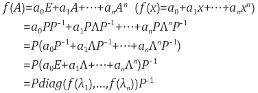 즉, 행렬 A의 고유벡터들을 열벡터로 하는 행렬을 P, 고유값들을 대각원소로 하는 대각행렬을 Λ라 하면 다음 식이 성립한다.