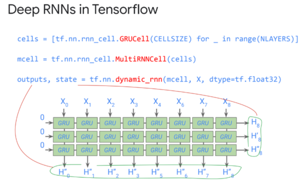 - advanced RNN : multiRNNCell 호출로 layer를 늘리는 케이스
