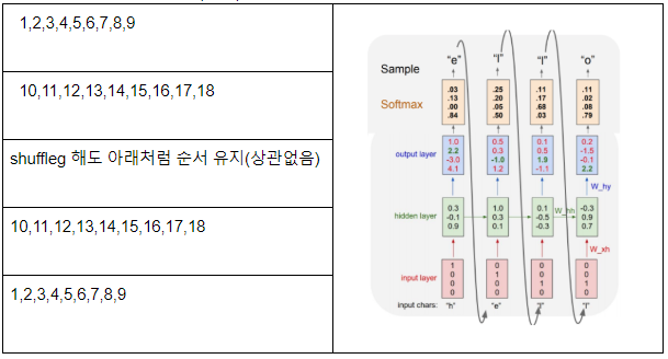 - sequence 모델을 적용할때, 데이터셋을 shuffle 하면 안되는 것 아닌가? 왜냐면 shuffle을 하면 sequence의 성격을 잃게 되지 않나?