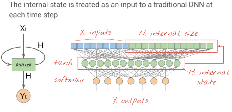 - RNN은 timeseries 데이터의 성격을 받아들일 수 있도록 구성되어 있음