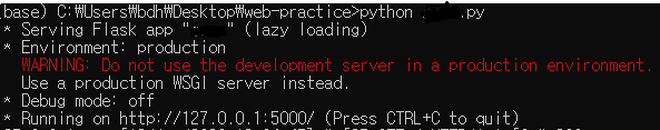app.run(host=''0.0.0.0') 으로 입력하면 해당 서버의 ip로 host가 설정된다. 즉 외부에서도 접근 가능하게 됨