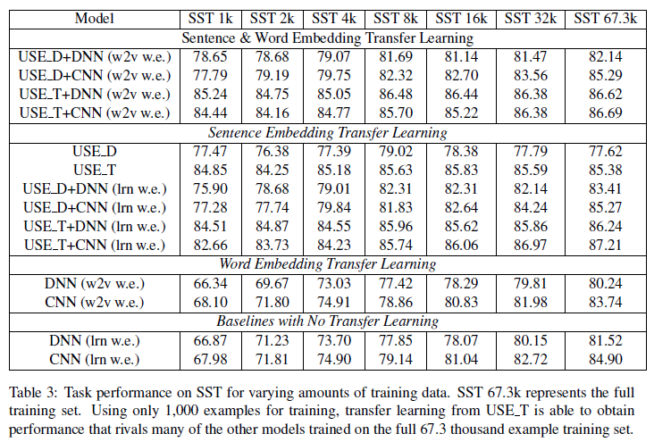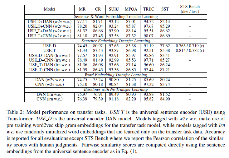 특히, 문장과 단어를 조합한 transfer learning 모델이 가장 좋은 성능을 나타냄