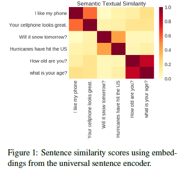Cer, Daniel, et al. "Universal sentence encoder." arXiv preprint arXiv:1803.11175 (2018).