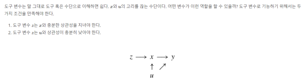 즉, 실험에 준하는 외생성을 확보하게 해주는 것이 도구변수다.