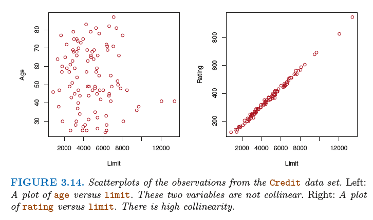 오른쪽 그림과 같이 긴밀한 관계가 있을 때에는 high leverage가 있어 predictor X를 선택하기 어렵다.