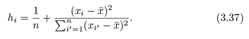 일단 각 predictor X 간의 긴밀한 연관이 있다는 것을 볼 수 있는 지표로 leverage statistic을 아래 식으로부터 도출할 수 있다.