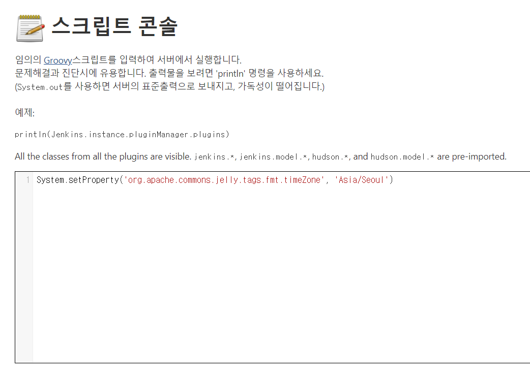 > 젠킨스 시스템 자체 timezone 설정 (전체 변경)