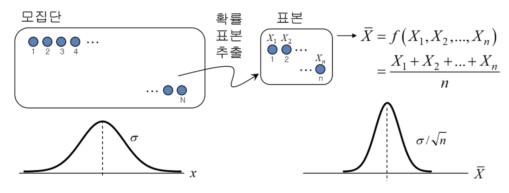 - 표본집단들의 평균이 갖는 분포에 대한 법칙