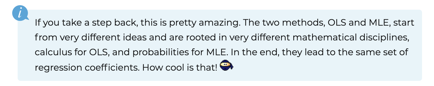 The cool thing is that under certain conditions, the MLE and OLS methods lead to the same solutions.