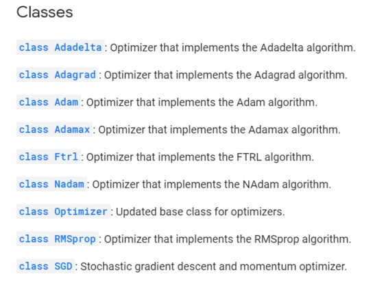 > https://www.tensorflow.org/api_docs/python/tf/keras/optimizers