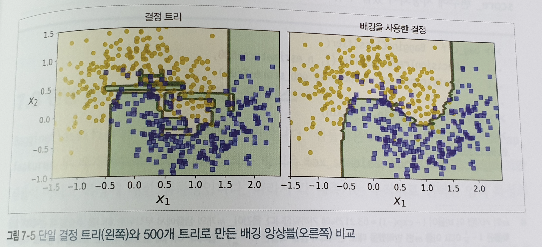 - 훈련세트에서 중복을 허용(Bootstrap)하여 샘플링하는 방식