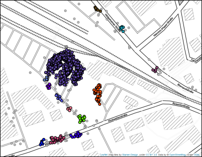 2. HDBSCAN으로 클러스터링 할 경우 : 가변적인 epsilon 거리로 인해 밀집된 기차역 주변에도 많은 수의 마이크로 클러스터를 반환하는 결과를 얻을 수 있다.