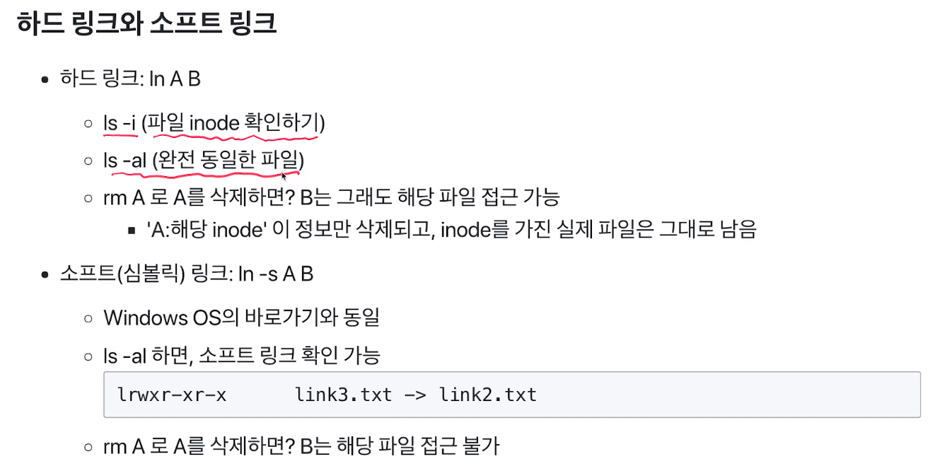 ln link.txt hard.txt → link.txt와 hard.txt 는 동일한 것(마치 cp 와 비슷)