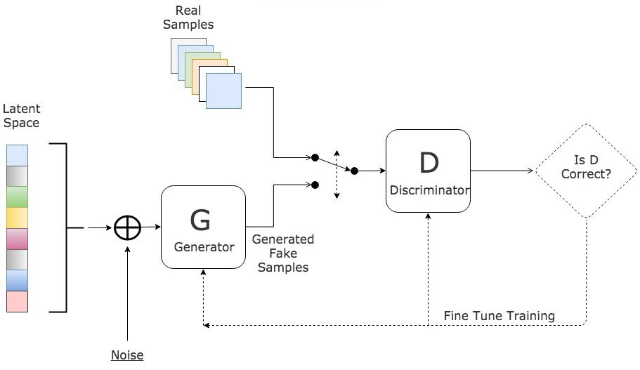 - 두개의 모델은 동시에 학습됨. 일반적으로 모델의 구성도와 학습 절차는 아래 사진과 같음