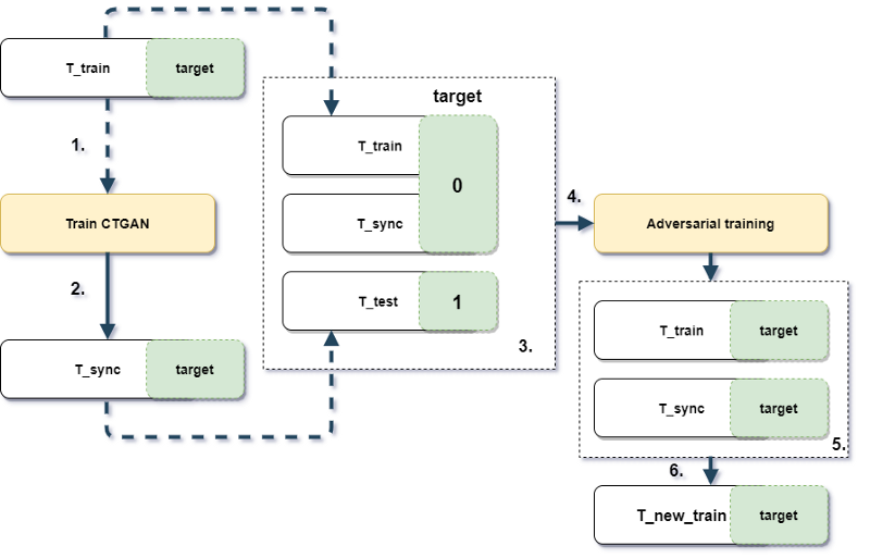 - T_train과 T_test로 데이터를 나누고, generator는 T_sync라는 데이터를 생성함