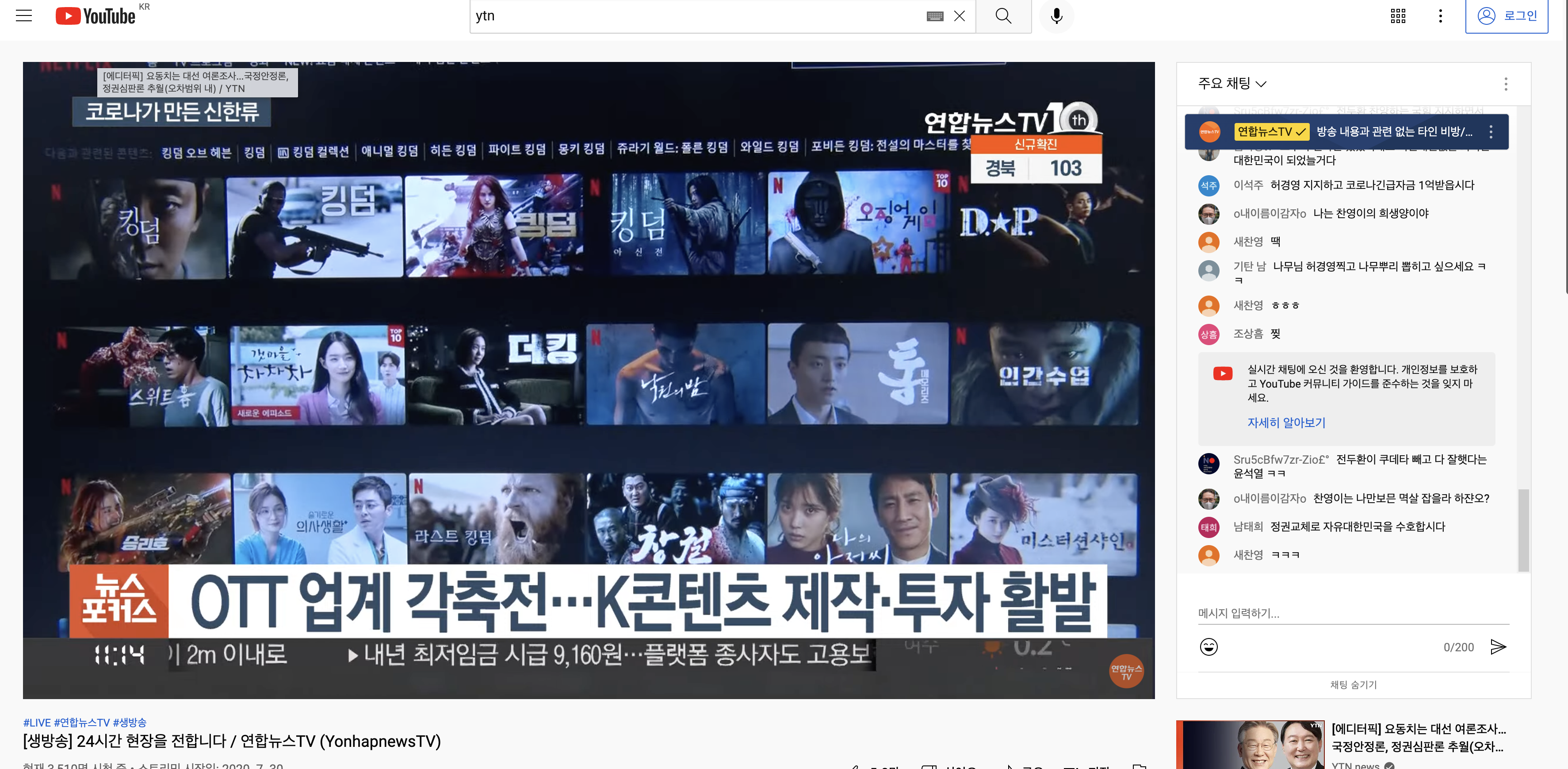 video_id = 'GoXPbGQl-uQ' # [LIVE] 대한민국 24시간 뉴스채널 YTN
