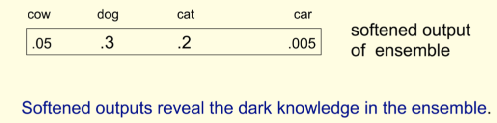 - 모델은 softmax를 이용하여 각 label별 확률값을 추출하게 되는데, 여기서 모델의 output이 dog였다면, dog외의 나머지 label에 대해 예측한 정보. 즉, 개를 제외한 나머지 label 고양이, 사자, 소 중에 어떠한 부분에 더 가깝게 예측했는지 확인할 수 있다. 이러한 출력값들이 모델의 knowledge 지식이라고 볼 수 있다.