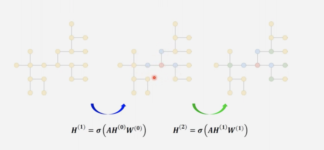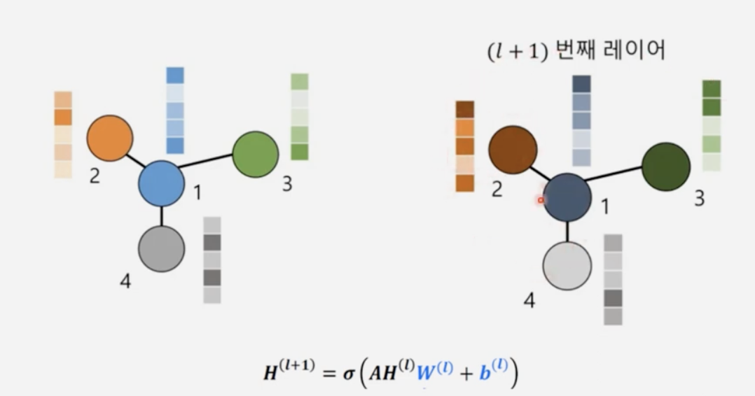- 이렇게 한번 전체적으로 지역적 노드와 같이 업데이트 되는 형태를 1회의 layer를 거쳤다라고 표현