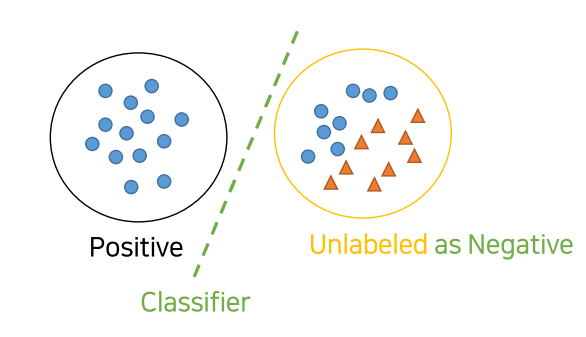 - 즉, unlabeled 데이터는 잠재적인 positive, negative 성격을 가지고 있기때문에 이를 고려해서 좀 더 정교하게 machine을 학습 시킬 필요가 있음