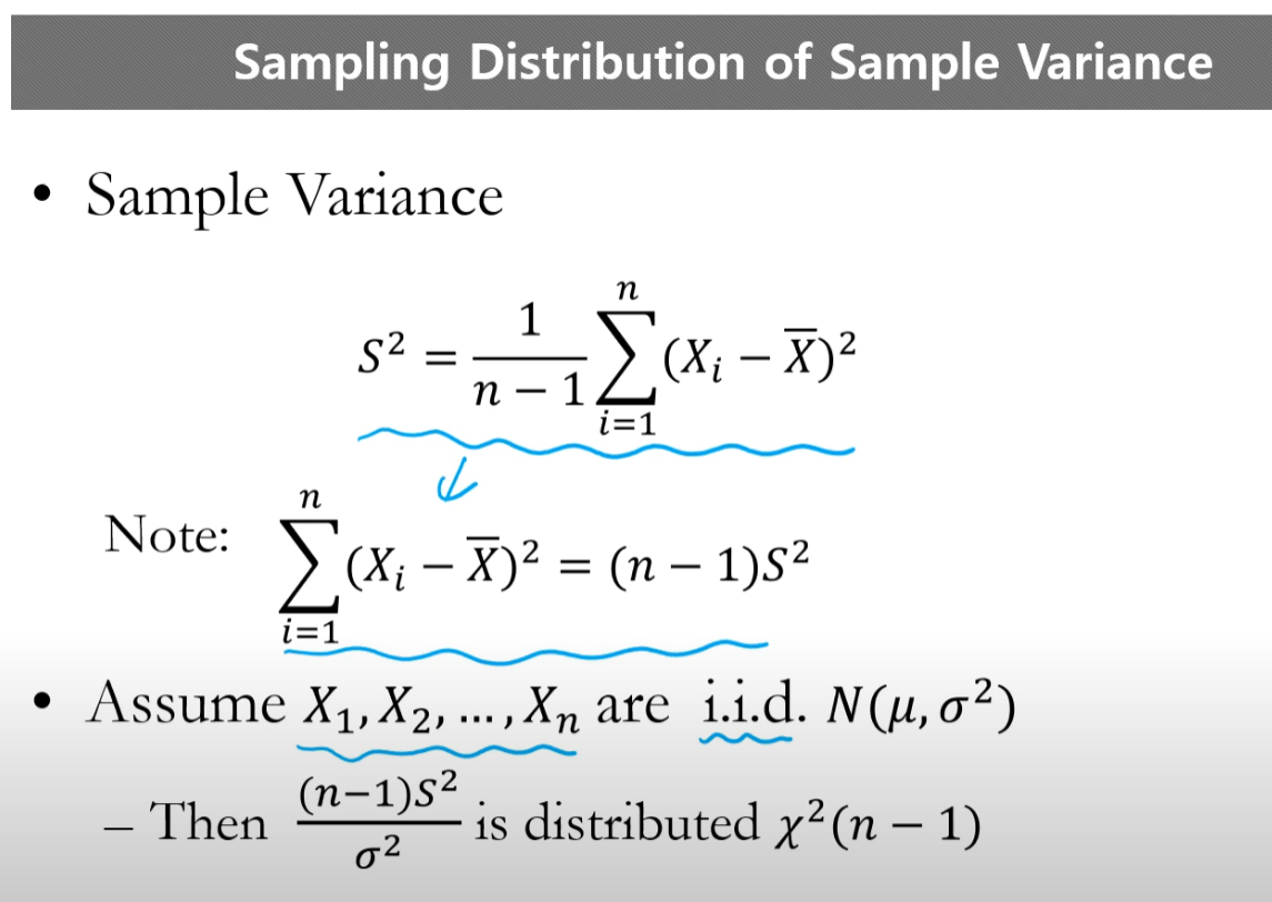 - 표준정규분포들의 제곱의 합을 의미