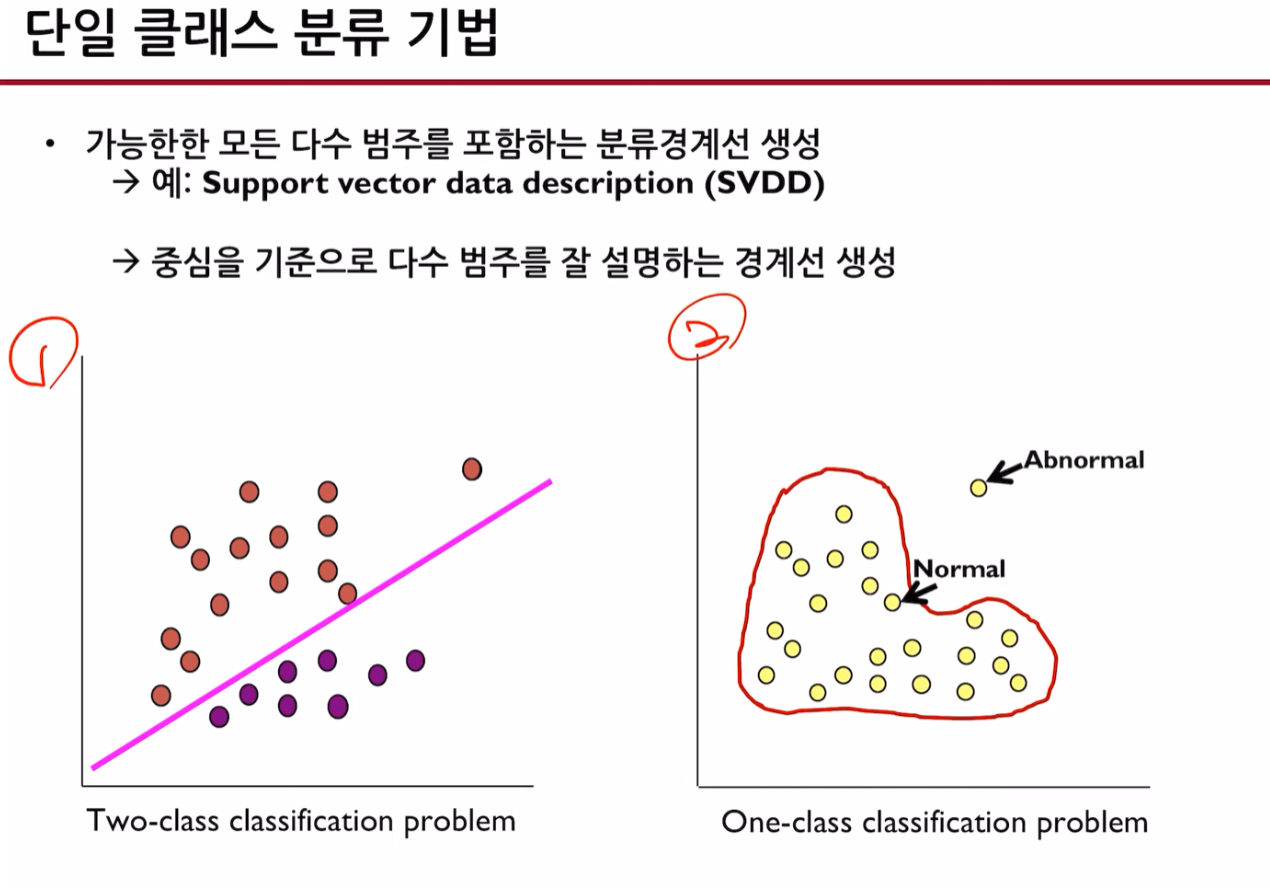 - 기존 관찰된 데이터 만을 기반으로 바운더리를 만들기 때문에 기존 관찰되지 않았던 데이터에 대해 잘못 분류할 가능성이 있음