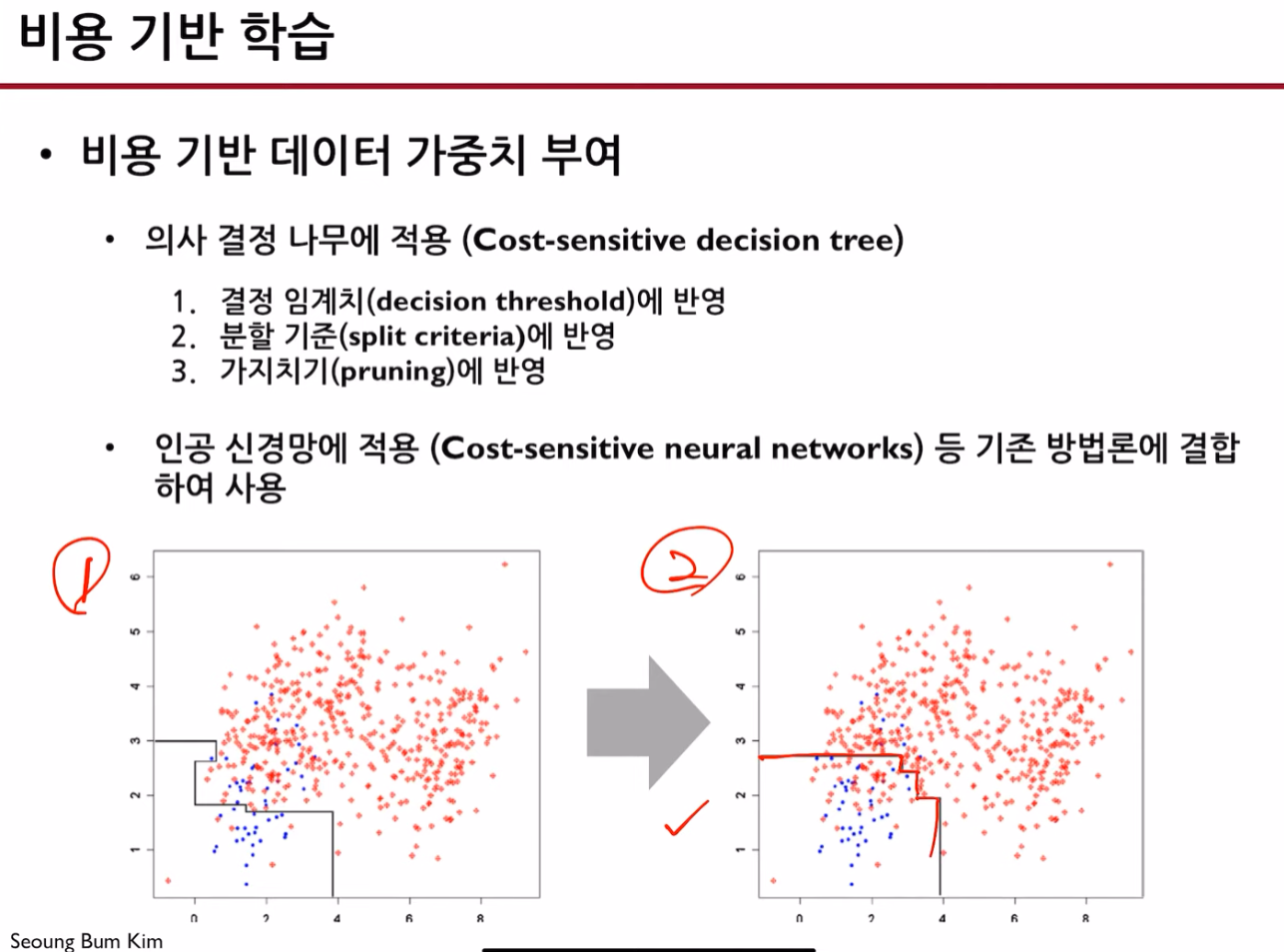 - 이상치를 정상으로 분류하는 오분류를 막기위해 이상치에 좀 더 비중을 둬서 분석하는 방법