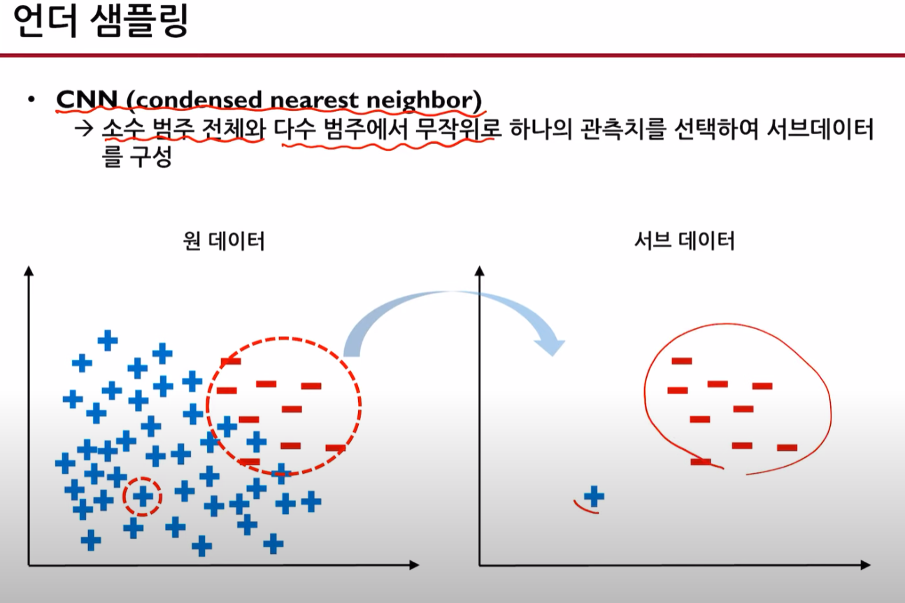 | 장점 | 1. 다수 범주 관측치 제거로 계산시간 감소 2. 데이터 클랜징으로 클래스 오버랩 감소 가능 |