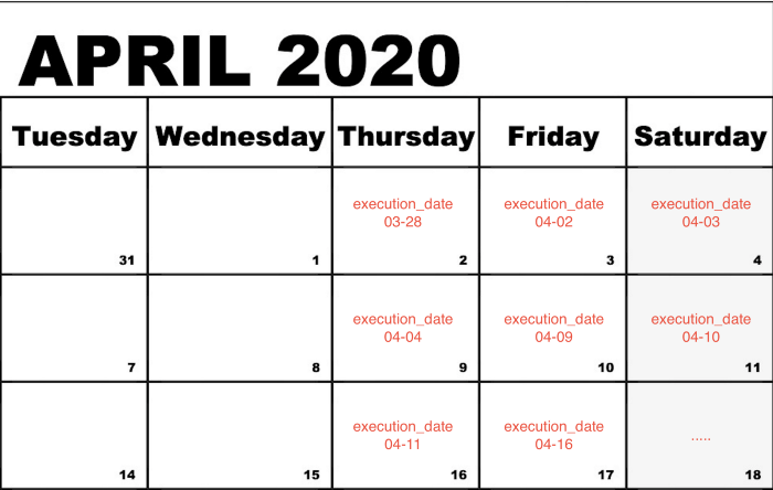 - daily로 스케줄링이 되어 있다면 실행날짜가 1월 10일인데, 최근 실행된 job_date가 1월5일이라면, execution_date는 1월 6일로 찍히는 개념