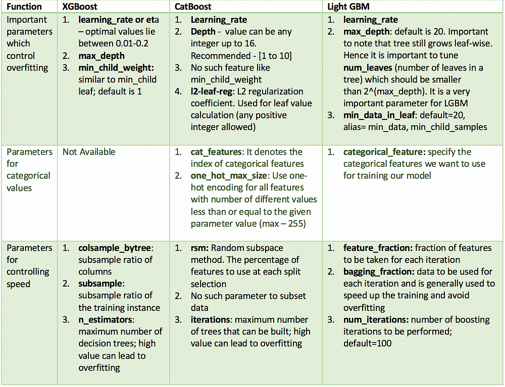 이들의 공통점은 모두 다양한 데이터 타입(범주형, 연속형)의 feature를 다룰 수 있으며, 빠른 속도로 대용량 데이터셋을 처리할 수 있음