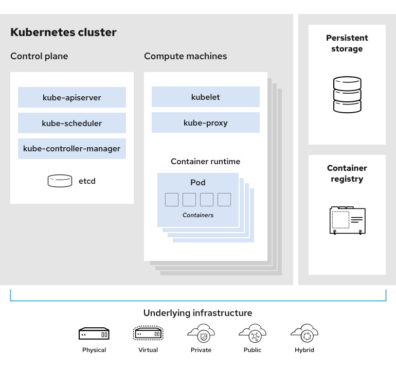 쿠버네티스는 여러 대의 서버(호스트)를 클러스터라는 그룹으로 구성하고, 이 클러스터 내에서 동작하는 컨테이너화된 애플리케이션을 관리합니다. 각각의 서버는 워커 노드(Worker Node)라고 불리며, 이 노드들은 쿠버네티스 클러스터의 일부가 됩니다.