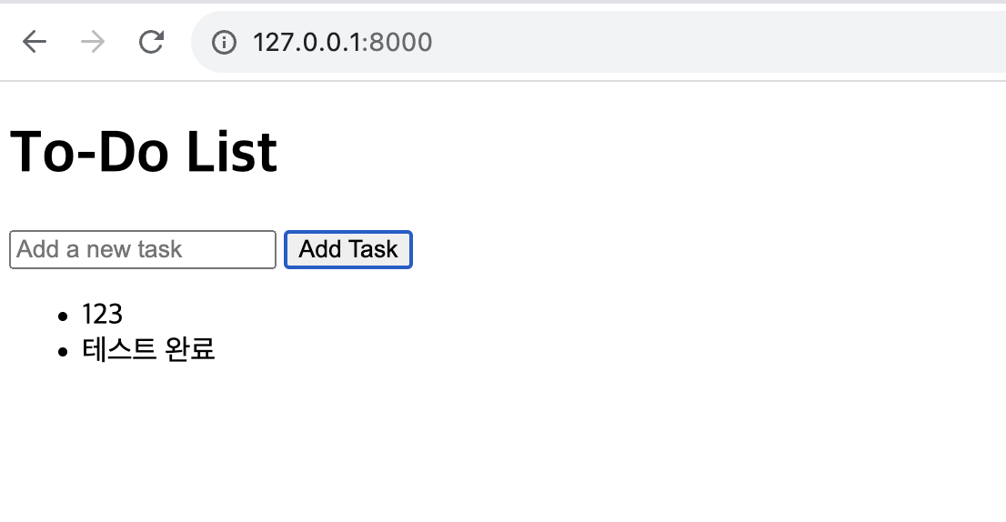 http://127.0.0.1:8000**로 접속하면 FastAPI로 동작하는 To-Do 리스트 애플리케이션을 확인