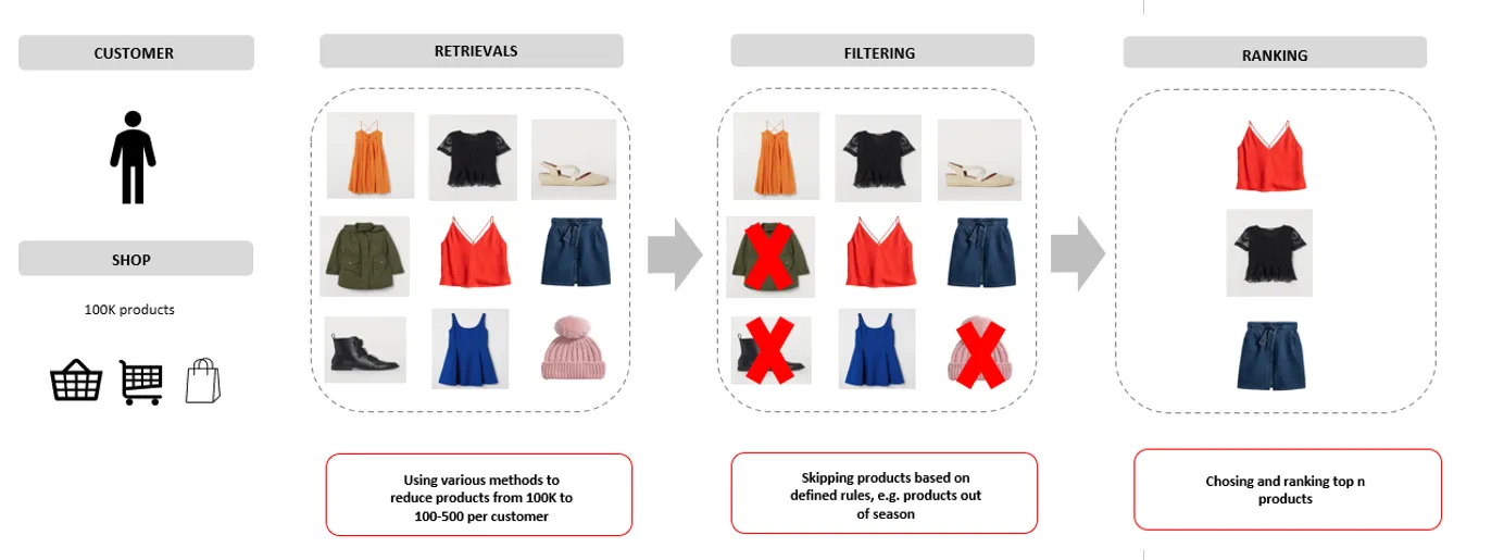 - 비유: 서점에서 수천 권의 책 중에서 취향에 맞을 가능성이 높은 100권을 골라내는 과정