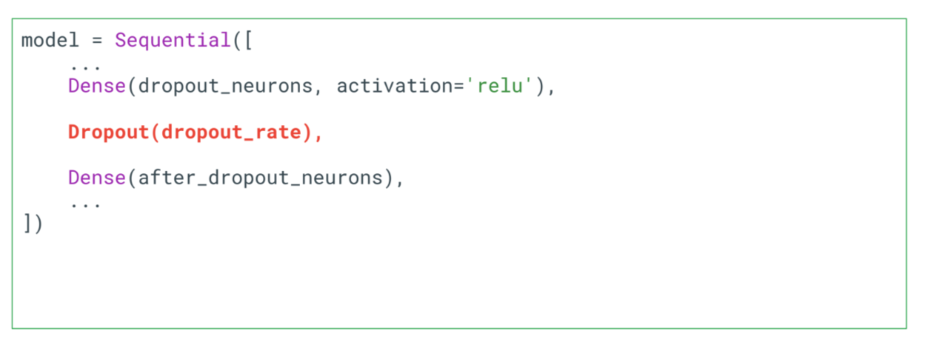 - dropout layer는 layer를 정의한 이후에 코드를 적어주면 됨 → 코드상으로는 하나의 layer가 들어가는 것처럼 보이도록 되어 있음