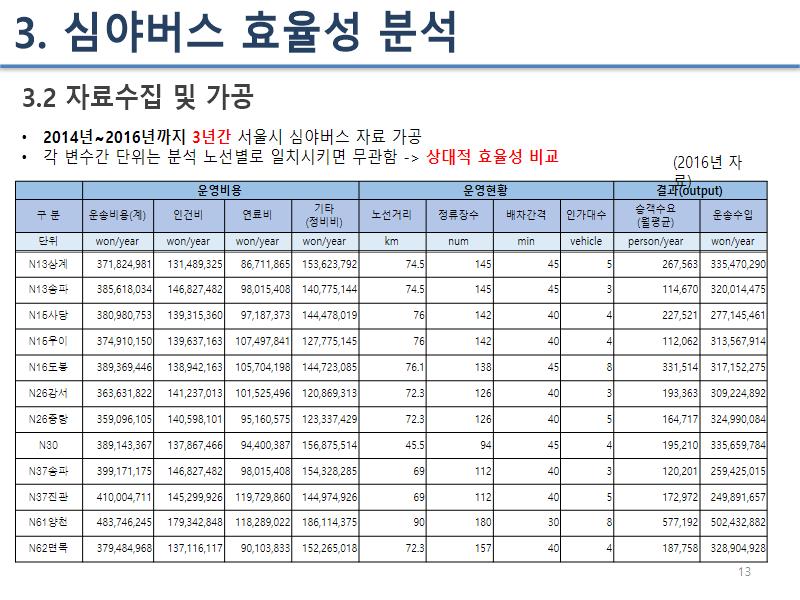 자료포락분석기법(DEA)을 활용한서울시 심야버스 노선별 수송 효율성 분석 본문