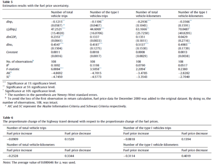 추정된 결과는 고속도로 교통 수요는 유가 불확실성의 증가와 함께 증가함